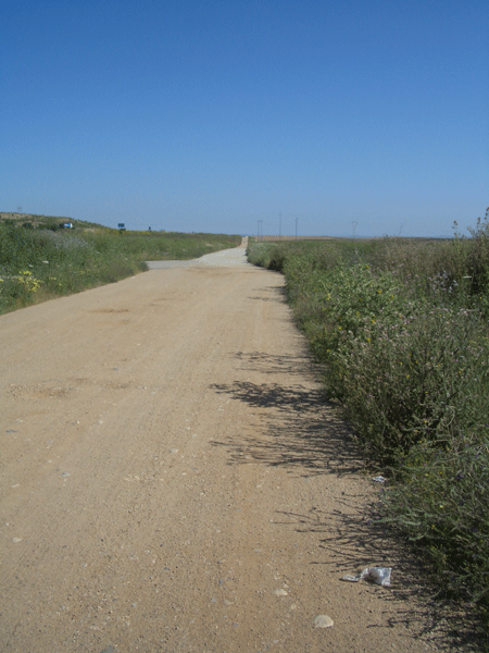 Zusätzlich zur Länge der Etappe muss man auch von 450 m auf 800 m steigen. Man erreicht die Extremadura. Der Bau der Autobahn hatte den Wegverlauf verändert, sodass wir lieber auf der Landstraße blieben. Es gab auf dieser Etappe nach El Real keine Infrastruktur mehr.