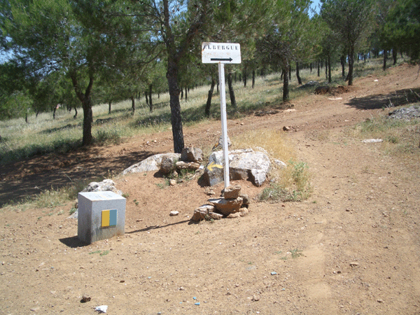 Die Landschaft ist wieder traumhaft, insbesondere der Anblick des Tajo-Stausees. Ab dem Stausee geht es bis zum Zielort entlang der Straße. Die Höhenmeter, die es zum See bergab ging, muss man leider wieder steigen. Beeindruckend auch die Verpflegungsstelle für den durstigen Pilger auf halber Strecke.