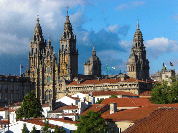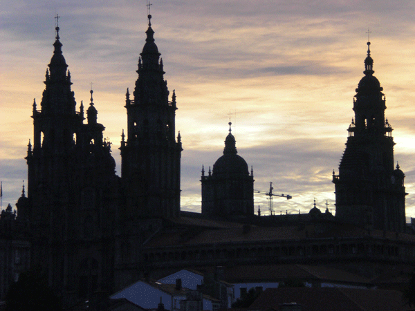 Landschaftlich schöne Gegend mit kurzer Straßenpassage. Absolut beeindruckend der Ausblick aus der Höhe über Santiago mit den drei Türmen der Kathedrale, Entfernung ca. 5 km. Die Ankunft in Santiago ist stets ein ganz spezielles Erlebnis.