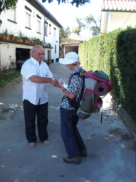 Ab Porto, von wo heute die bedeutendste Zahl von Pilgern startet, nahmen Heidi und ich den Weg in Angriff. Ab hier erlebten wir den Camino als absolut sicher und gut markiert. Wir verliefen uns dennoch gelegentlich mal, dann hatten wir aber nicht aufgepasst bzw. geträumt oder Hindernisse wie Autos oder Bauzäune hatten die Markierung verdeckt. In diesen Situationen verhalf die Wegbeschreibung des Outdoor-Handbuches, den Irrtum zu erkennen und den rechten Weg zu finden. Aber auch Einheimische sorgten dafür, dass wir nicht vom Camino ab kamen. Die Leute am Weg zeigte sich überhaupt als ausgesprochen freundlich, ob sie nun unseren Gruß erwiderten, Früchte des Garten schenkten oder einen Stempel in unseren Pilgerausweis drückten. Unterkünfte gab es genug, hier ließen wir uns vom Autor des Pilgerbuches leiten.