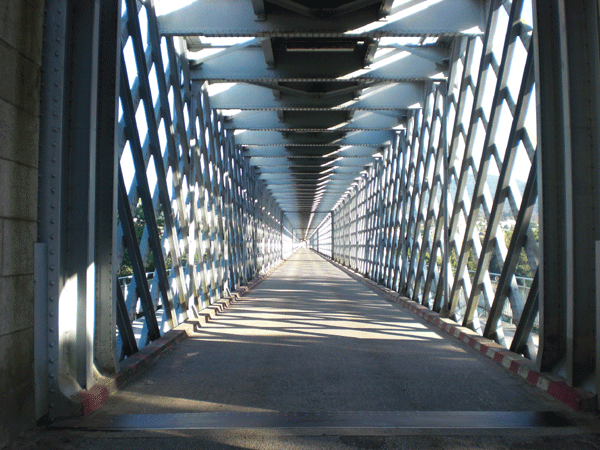 Durch die Festungsanlage geht es aus Valenca hinaus über eine eigenwillige Brücke in das spanische Tui. Die Grenzbrücke ist wirklich „der Hammer“. Tolle Blicke über den Fluss. Nach Tui erst schöne Landschaft, dann erreicht man nach einem Industriegebiet den nächsten Etappenort.
