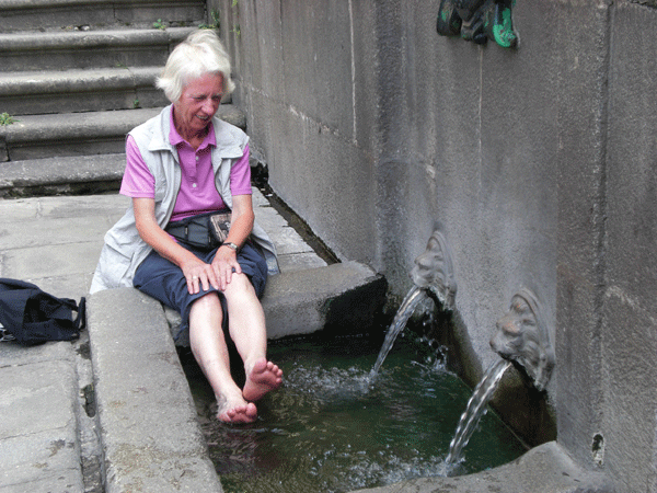 Landschaftlich reizvolle Strecke, die auch mal als Bachbett herhalten musste. Zahlreiche Jacobusdarstellungen waren zu sehen. Die Besonderheit an Caldas de Reis waren die heißen Termal-Quellen.