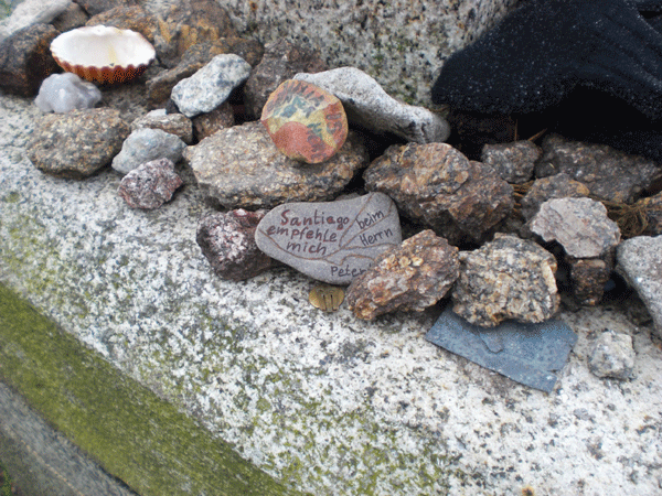 So etwas gehört zum Pilgern erfahrungsgemäß einfach mit dazu. Bei strahlender Sonne in Santiago anzukommen, wie auch unsere zwei Nächte im Hostal „Nebraska“ mit Blick auf die Kathedrale, empfanden wir absolut als Geschenk unseres Heiligen. Dies gilt auch für unser Ankommen beim Km-Stein 0,00 am Kap Finisterre am frühen Vormittag ohne Pilger-/Touristenrummel. Die Gesamtheit unserer Erlebnisse und Begegnungen können natürlich hier nicht wiedergegeben werden. Ich habe Tagebuch geführt. Daraus werde ich in meinem o.g. Pilgerbericht vieles der Nachwelt überliefern.